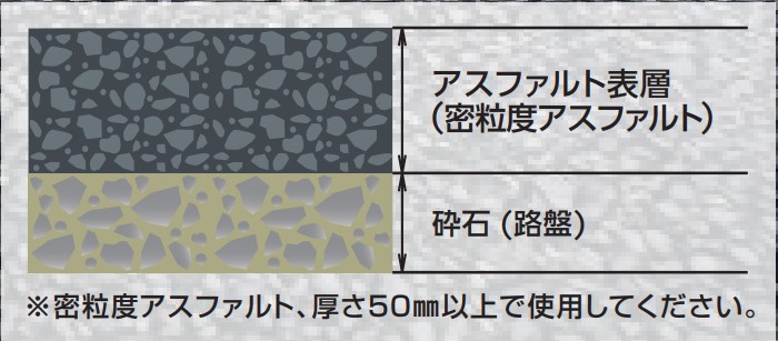 ※密粒度アスファルト・厚さ50mm以上で使用してください。
