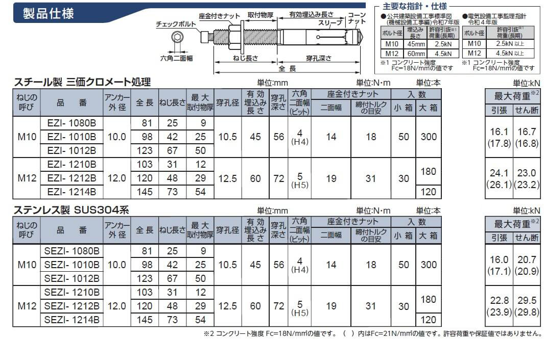 イージーアイアンカー EZI-B は、機器の据付けや振れ止め設置などに適したあと施工アンカーです。 取付物の上から施工が可能で、インパクトドライバによる簡単施工を実現。 チェックボルトが本体頂部に接することで施工完了を目視確認でき、施工品質の安定化に貢献します。 スチール製(三価クロメート)およびステンレス製をラインナップしています。
