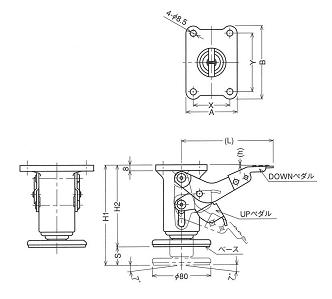 ハンマーロック キャスター機器用ストッパー・ドア/門扉固定金具|移動防止に最適 吉川商工