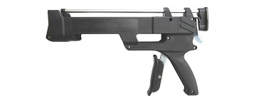 ① 先端のキャップを取り外します。 ② 注入ノズルを取り付けます。 ③ ガンにカートリッジを装着し、トリガーを動かし樹脂を吐き出します。 |