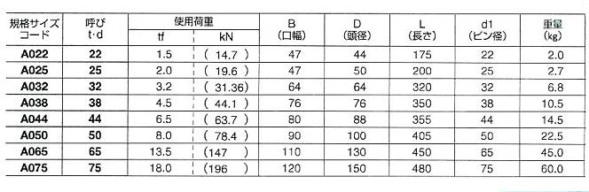 | 規格 | 呼び | 使用荷重(tf) | 重量(kg) | 価格/個 |