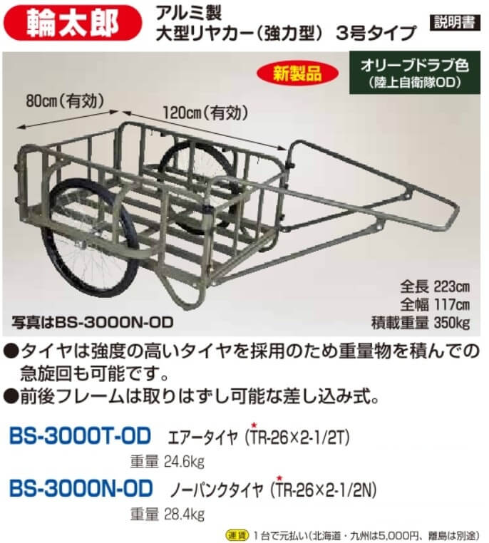 アルミ製折り畳み式大型リヤカー24インチタイヤ仕様